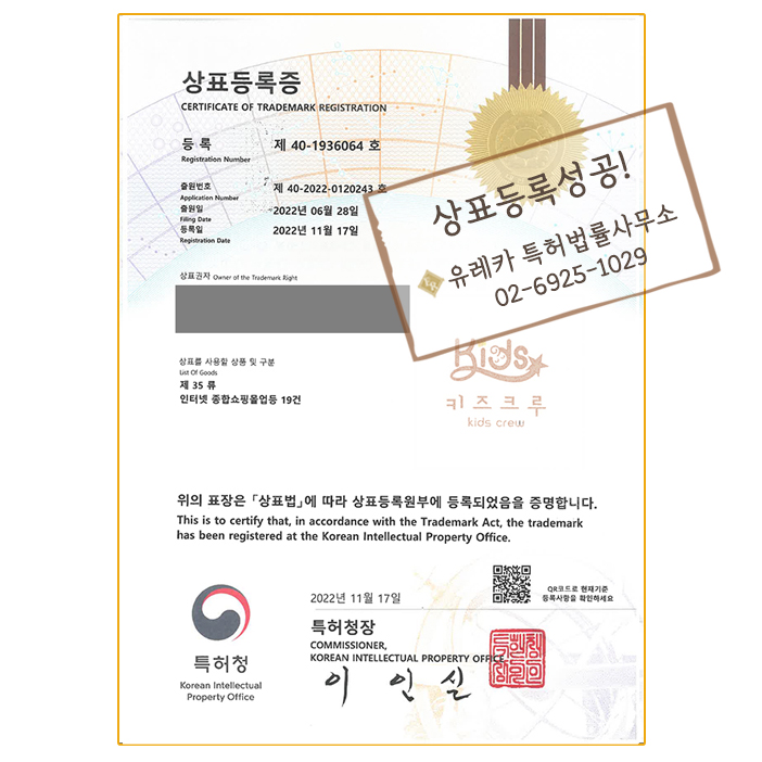 아동복 로고상표등록 성공! 키즈크루