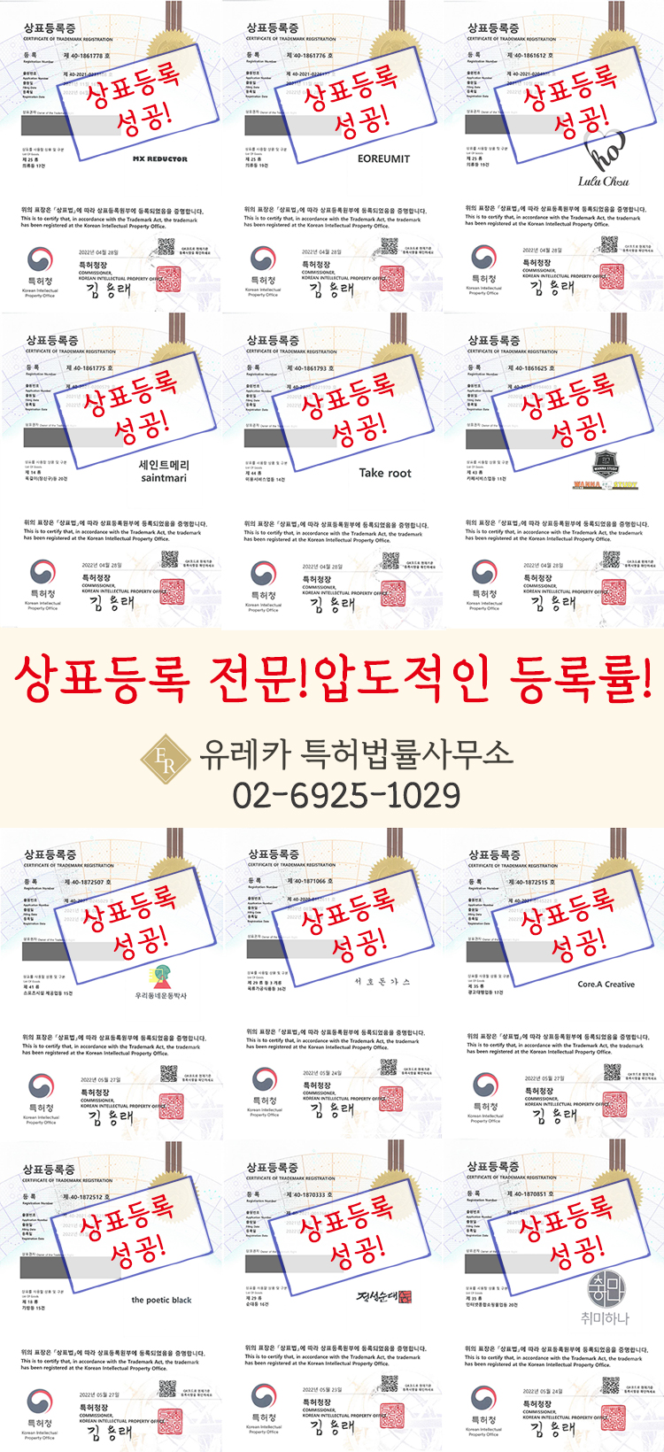 압도적인 등록률! 유레카특허법률사무소입니다.
