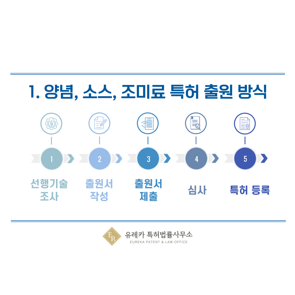 양념, 소스, 조미료, PatentRegistration, PatentApplication, Patent_Registration, Patent_Application, 특허, 특허출원, 특허등록, 특허권, 특허권출원, 특허권등록, 특허절차, 특허의미, 특허필요성, 특허권절차, 특허권의미, 특허권필요성, 분야, 특허분야, 분야특허등록, 분야특허방법, 분야특허권등록, 유레카, 특허변리사, 유레카특허법률사무소