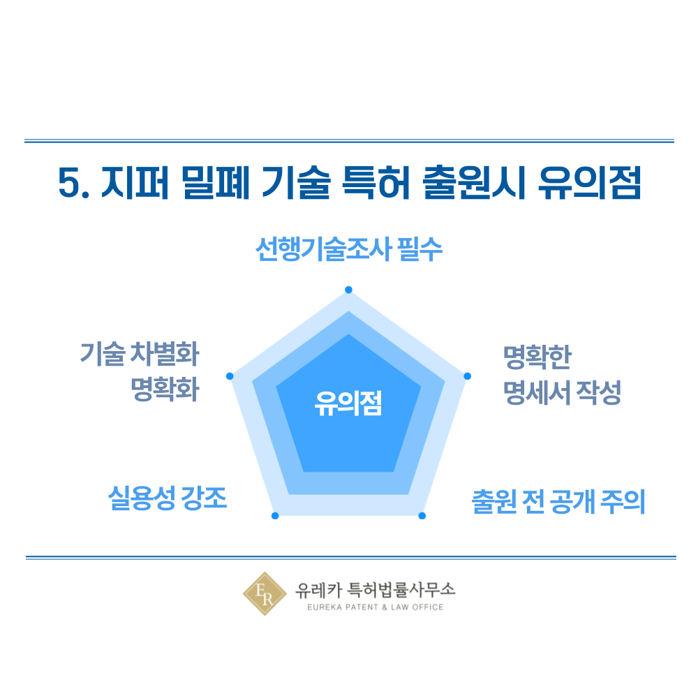기존에 비슷한 지퍼 구조나 밀폐 방식이 있는지 먼저 조사해 보아야 해요. 겹치면 등록이 어려울 수 있어요.