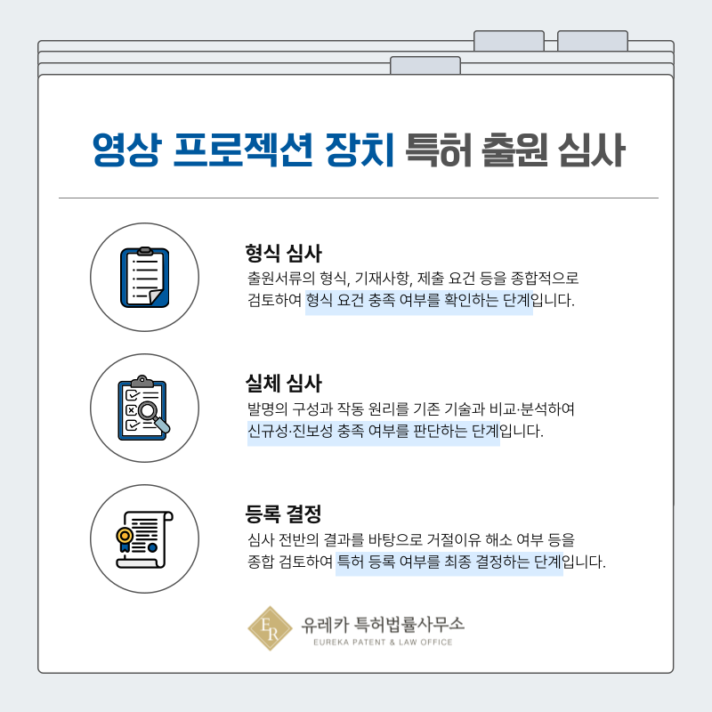 영상 표시 장치나 프로젝터 기술의 경우 구조 설명과 도면이 중요한 만큼 누락이나 오류가 없는지 꼼꼼히 확인됩니다.