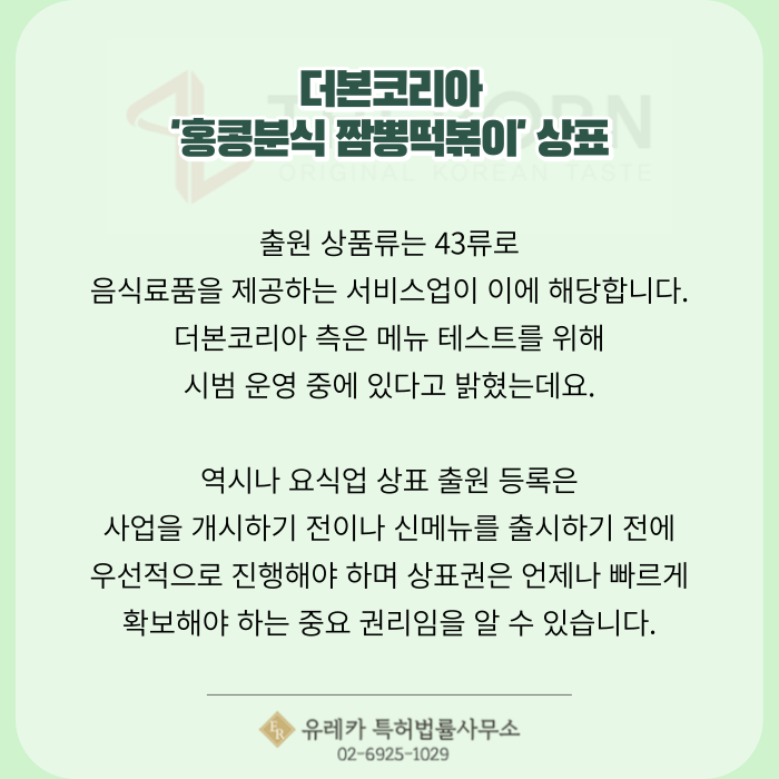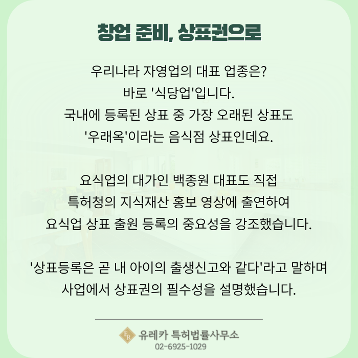 요식업 상표 출원 등록의 중요성을 강조했습니다.