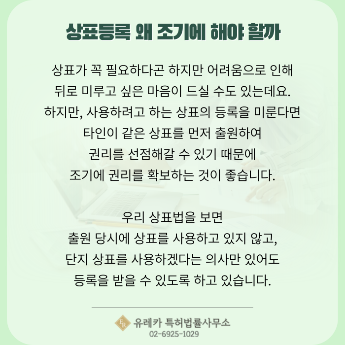 우선적으로 진행해야 하며 상표권은 언제나 빠르게