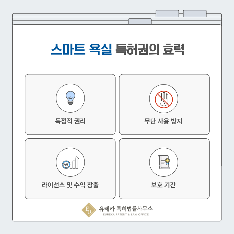 특허권이 등록되면 해당 욕실용 구조물이나 위생도기, 스마트 욕실 기술은 권리자만 독점적으로 사용할 수 있는 권리가