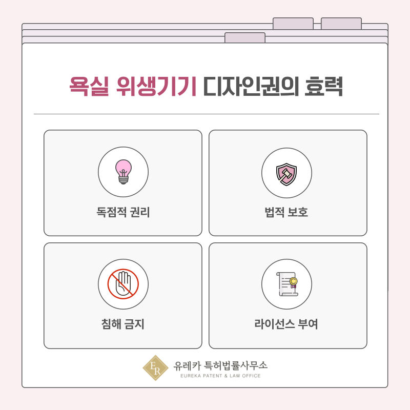 욕실 제품은 인테리어와 직결되는 요소이기 때문에 디자인권 확보는 브랜드 경쟁력으로 이어지는 중요한 자산이 됩니다.