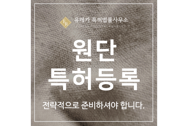 유레카 특허법률사무소는 원단 특허출원의 핵심 전략을 제시하고, 등록 가능성을 극대화할 수 있도록 도움을 드리고 이 ㅆ습니다.