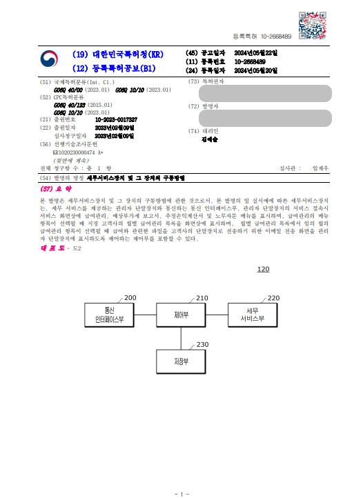 유레카 특허 등록 성공사례! ☞ 급여 관리, 재무, 회계, 세무소, BM, 앱, 어플리케이션, 플랫폼, 시스템 특허 출원 “세무서비스장치 및 그 장치의 구동방법” 특허권 등록