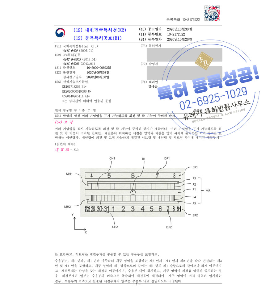 유레카특허법률사무소에서 특허등록 성공했습니다!