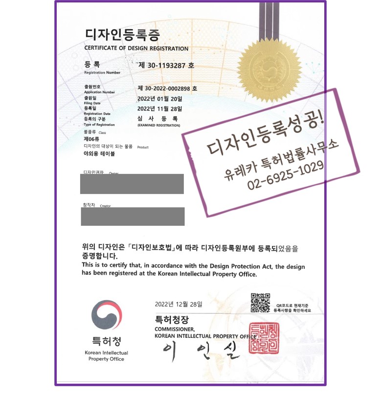 빠른 디자인출원 및 등록을 진행 해보세요.