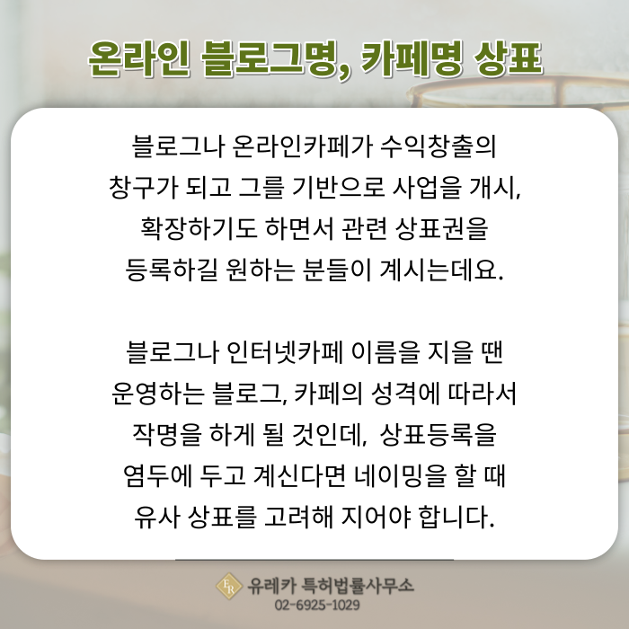블로그, 인터넷카페 이름 상표등록 주의하셔야 합니다