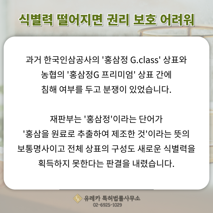 농협의 '홍삼정G 프리미엄' 상표 간에
