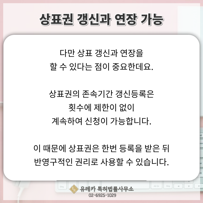 상표 갱신과 연장 가능하나 잊지 말고 챙겨야 합니다.