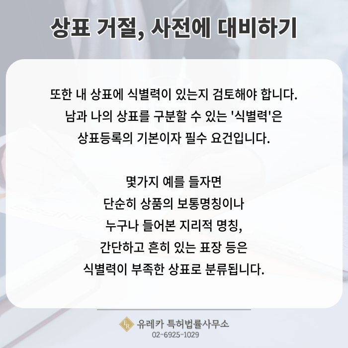 또한 내 상표에 식별력이 있는지 검토해야 합니다.