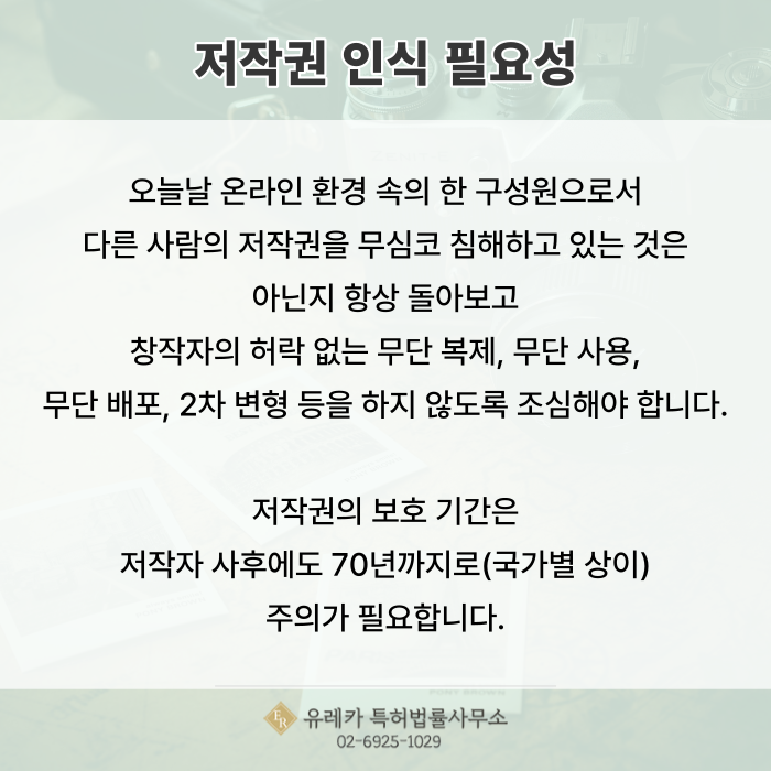 이상으로 사진 저작권 관련 내용을 알아보았는데요.