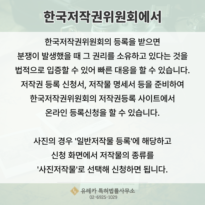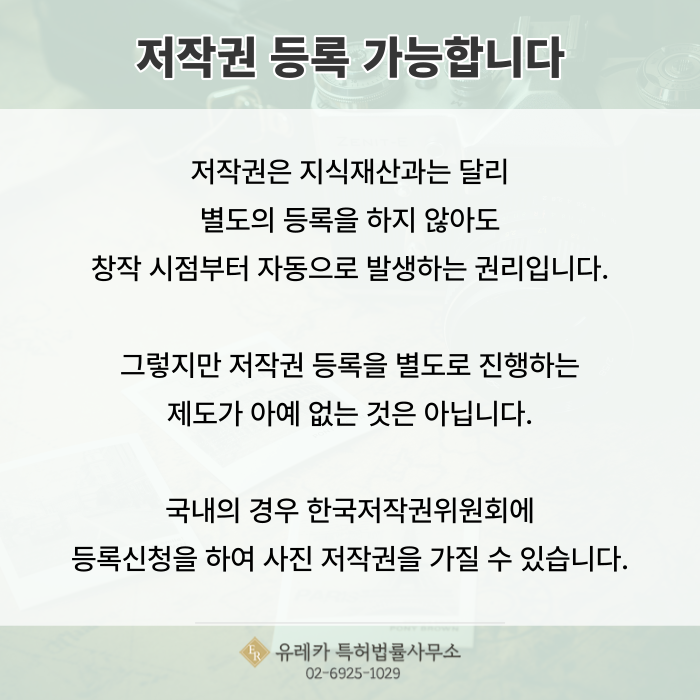 등록신청을 하여 사진 저작권을 가질 수 있습니다.