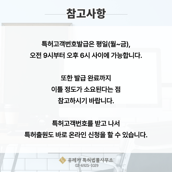 특허고객번호발급은 평일(월~금),