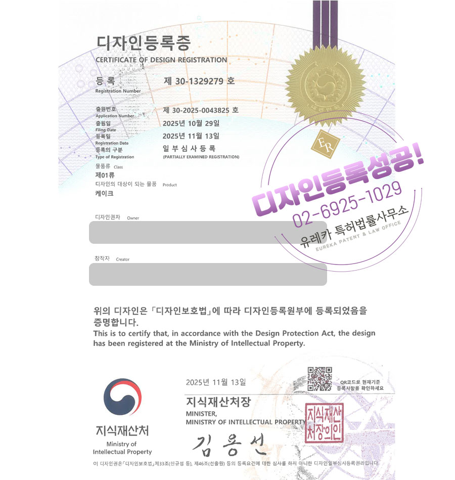 유레카 디자인등록성공ㅣ메시지케이크, 포토케이크, 프러포즈 디자인 출원 “케이크” 디자인권 특허 등록