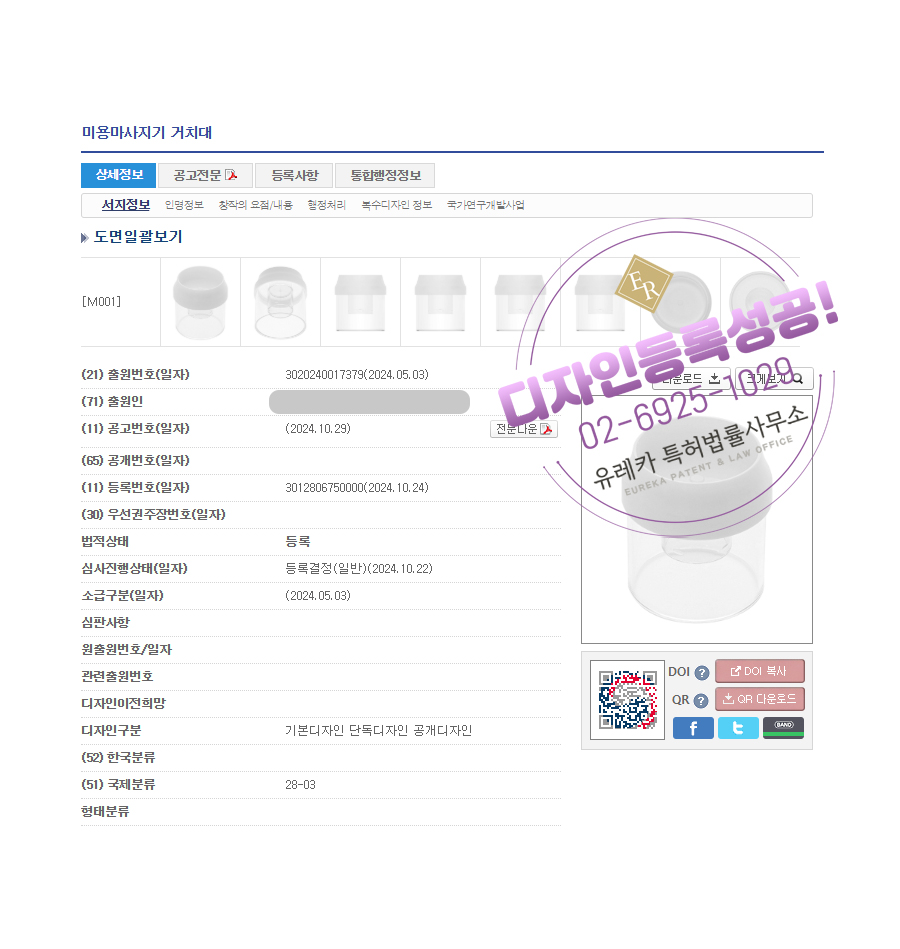 유레카특허법률사무소를 통해 디자인등록이 완료되었습니다.
