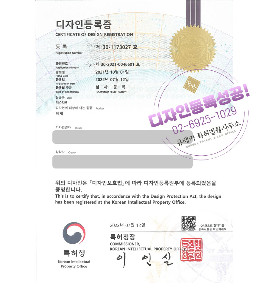 디자인등록되었습니다!