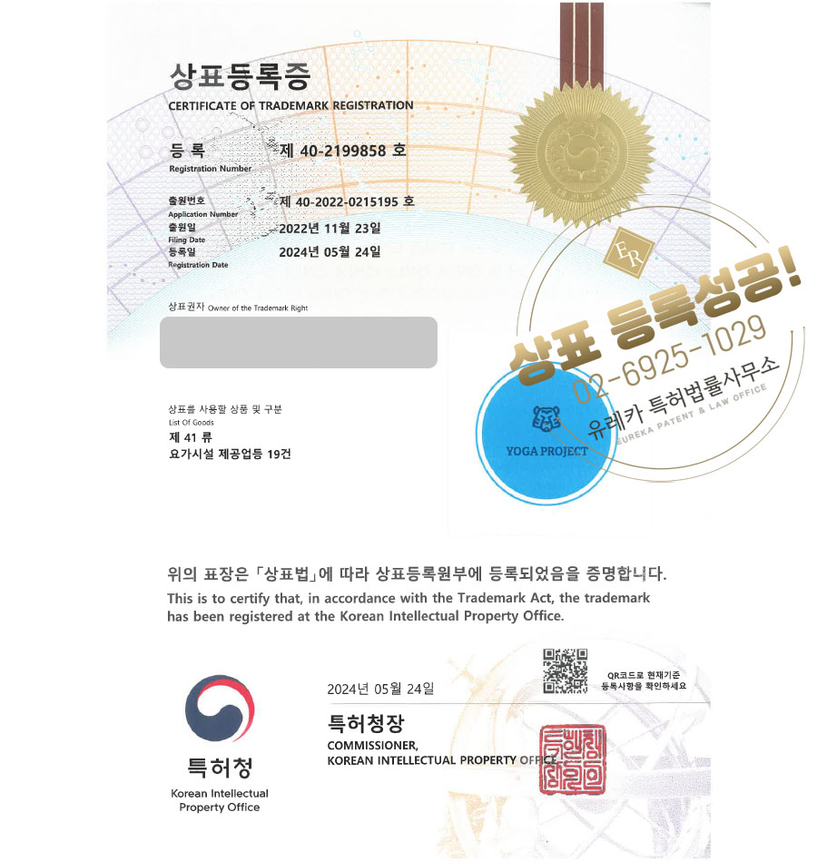 상표심사를 통과하여, 최종적으로 41류 상표등록에 성공하였습니다!