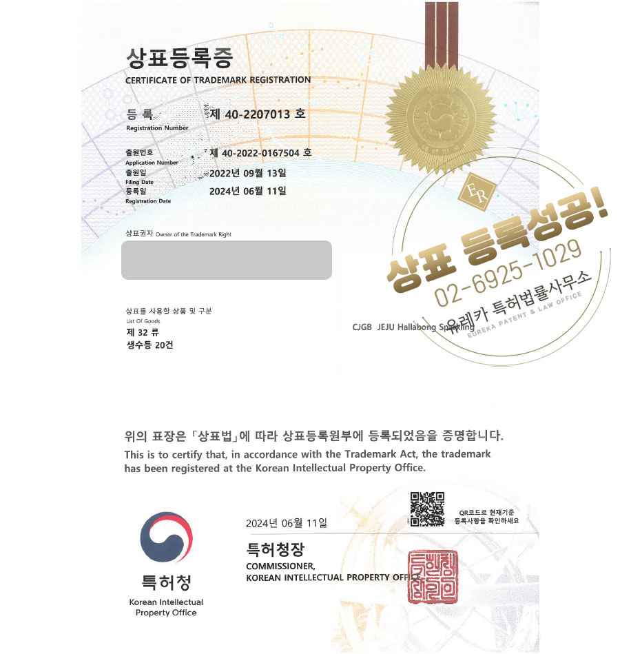 유레카 상표등록성공! ▶ 탄산 음료, 과일 음료, 에이드, 과즙 탄산 상표 출원 “한라봉 스파클링” 제주도, 하이볼, 숙취해소제, 건강보조식품, 건강기능식품 상표권 특허 등록