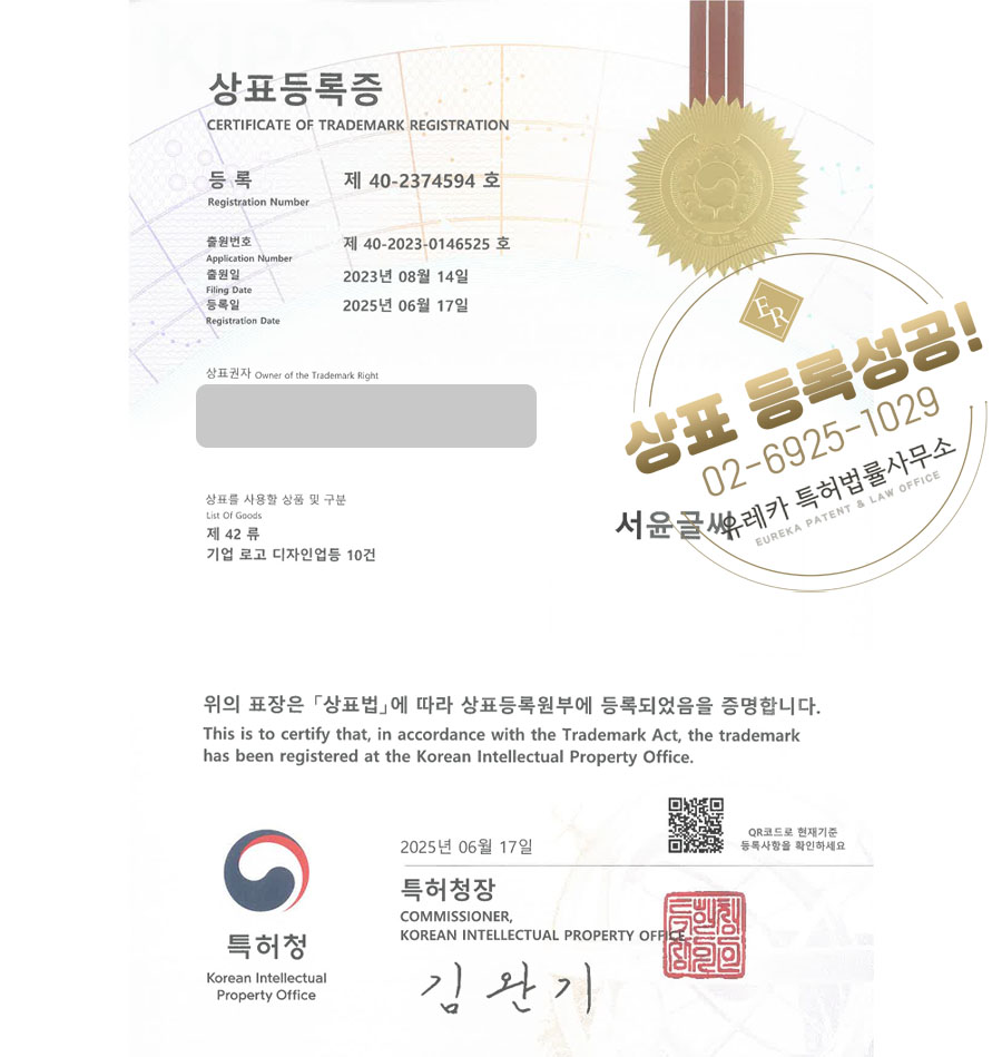 상표심사를 통과하여, 최종적으로 42류 상표등록에 성공하였습니다!