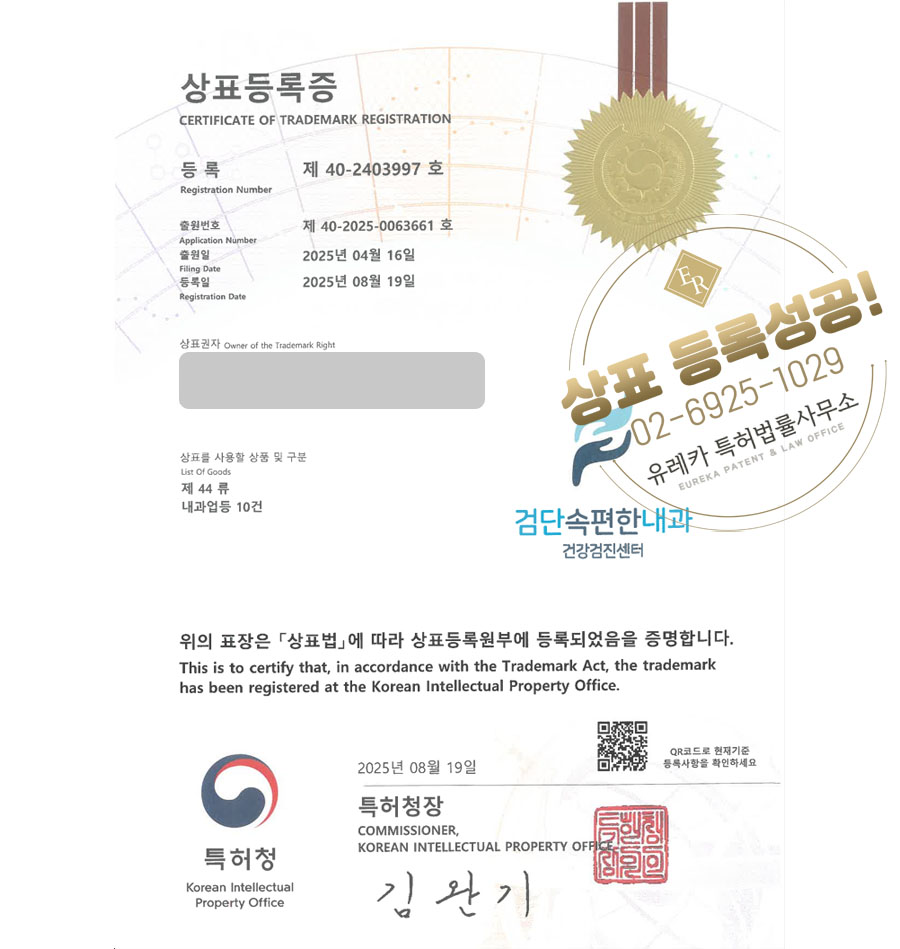 유레카 상표등록성공! 병원, 의원, 내과, 건강검진 상표 특허 출원 “검단속편한내과” 상표권 디자인 등록