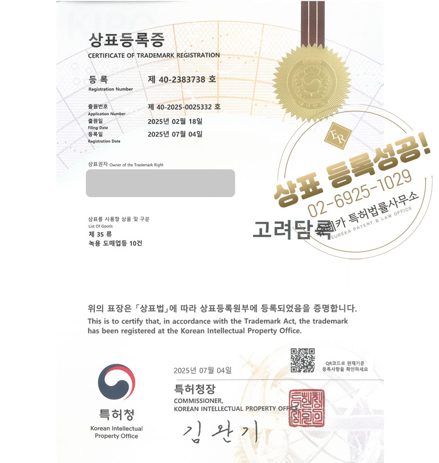 35류 상표등록에 성공하였습니다!