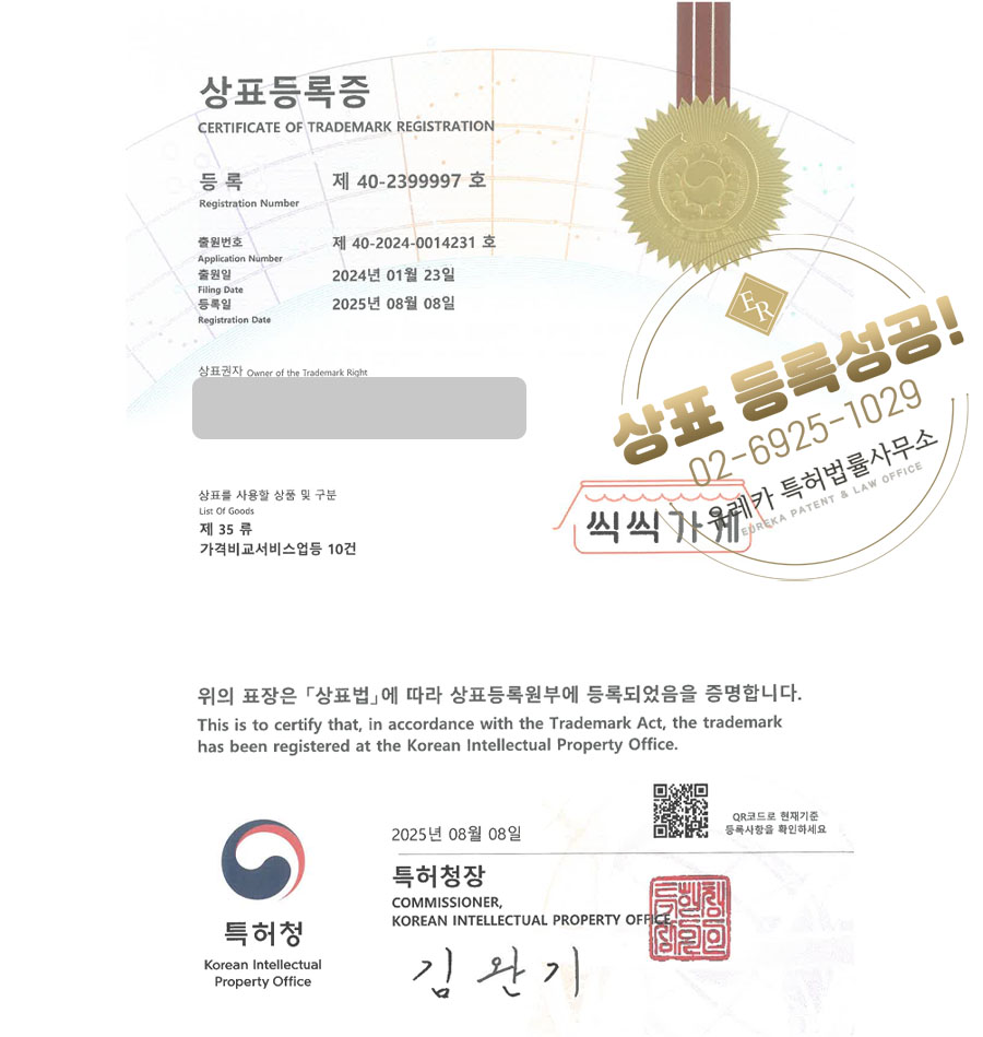 상표등록에 성공하였습니다!