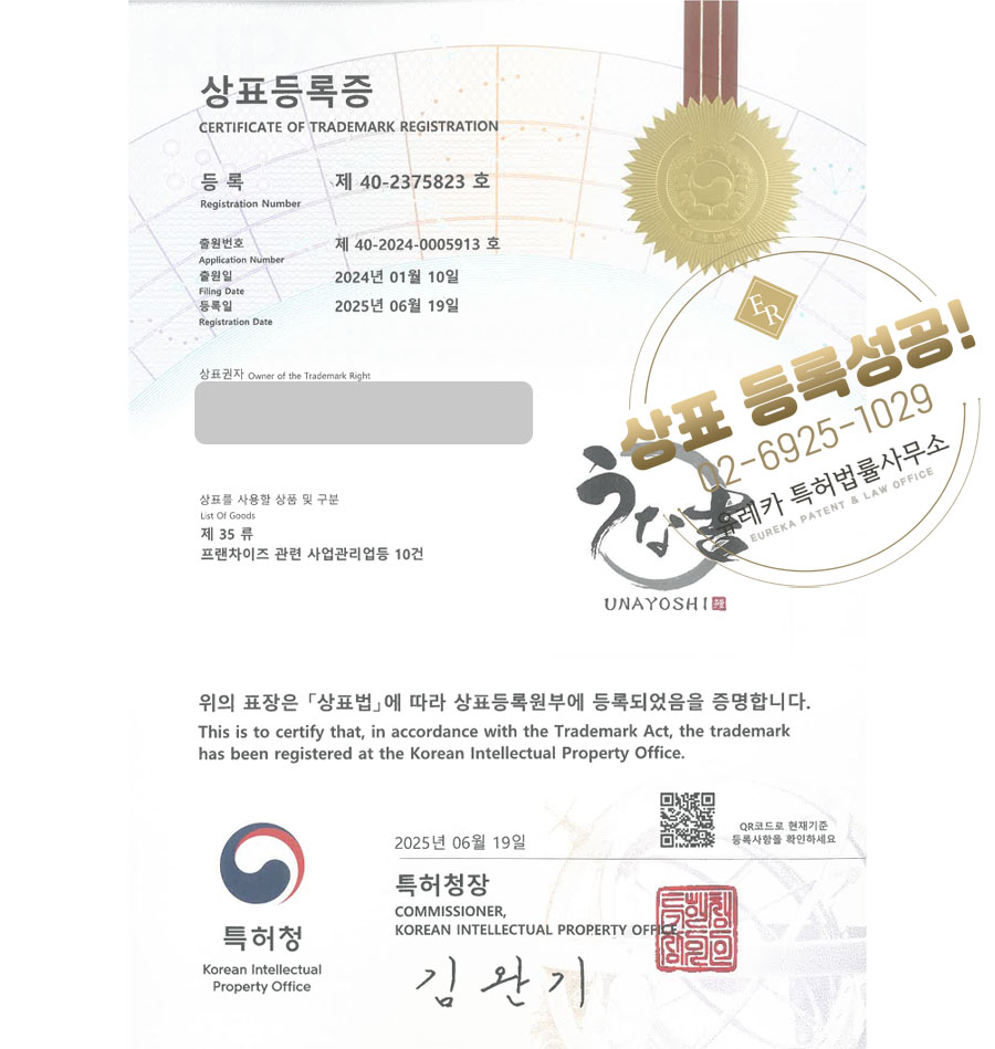 유레카 상표등록성공! 일식, 장어, 덮밥, 덮밥집, 우나기, 우나기동, 샌드위치, 연어, 참치, 돈까스, 낙지, 텐동, 규동 상표 특허 출원 “우나요시” 상표권 디자인 등록