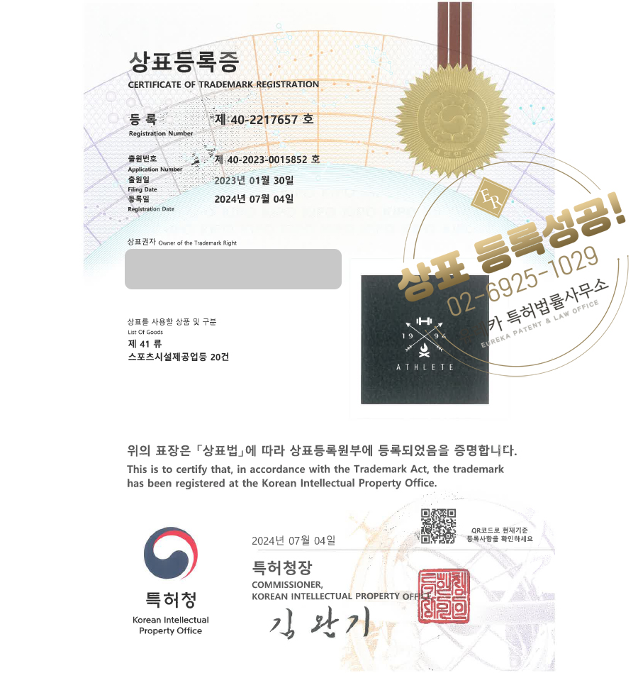 상표심사를 통과하여, 최종적으로 41류 상표등록에 성공하였습니다!