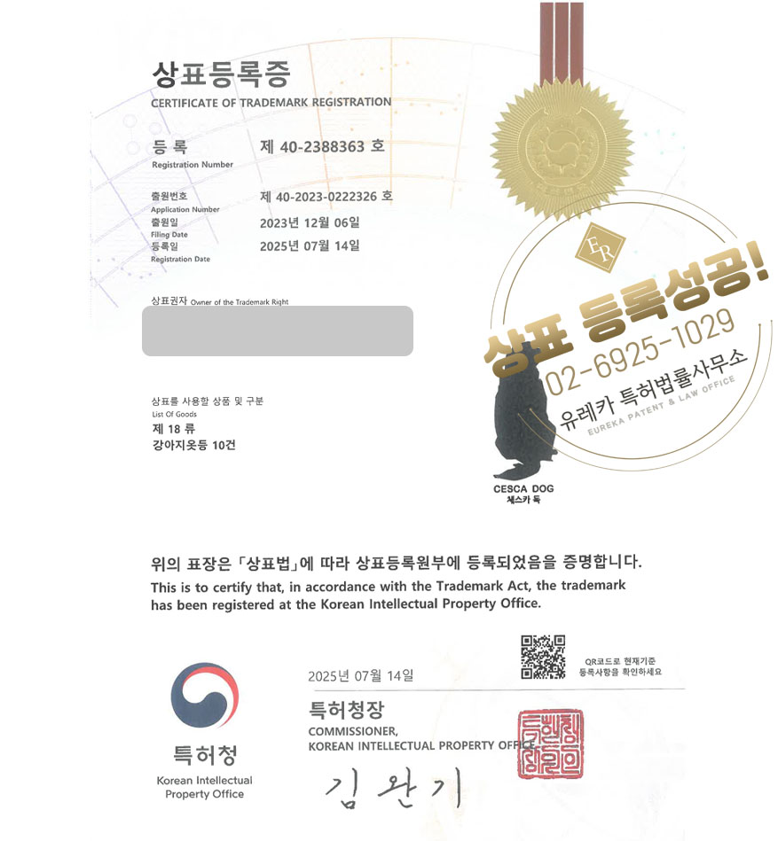 그 결과, 상표심사를 무사히 통과, 18류로 최종 등록에 성공했습니다!
