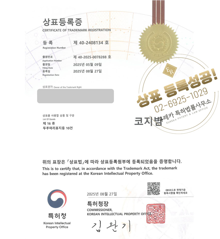 유레카 상표등록성공! 화장지, 쇼핑몰, 브랜드 상표 특허 출원 “코지밤” 상표권 디자인 등록