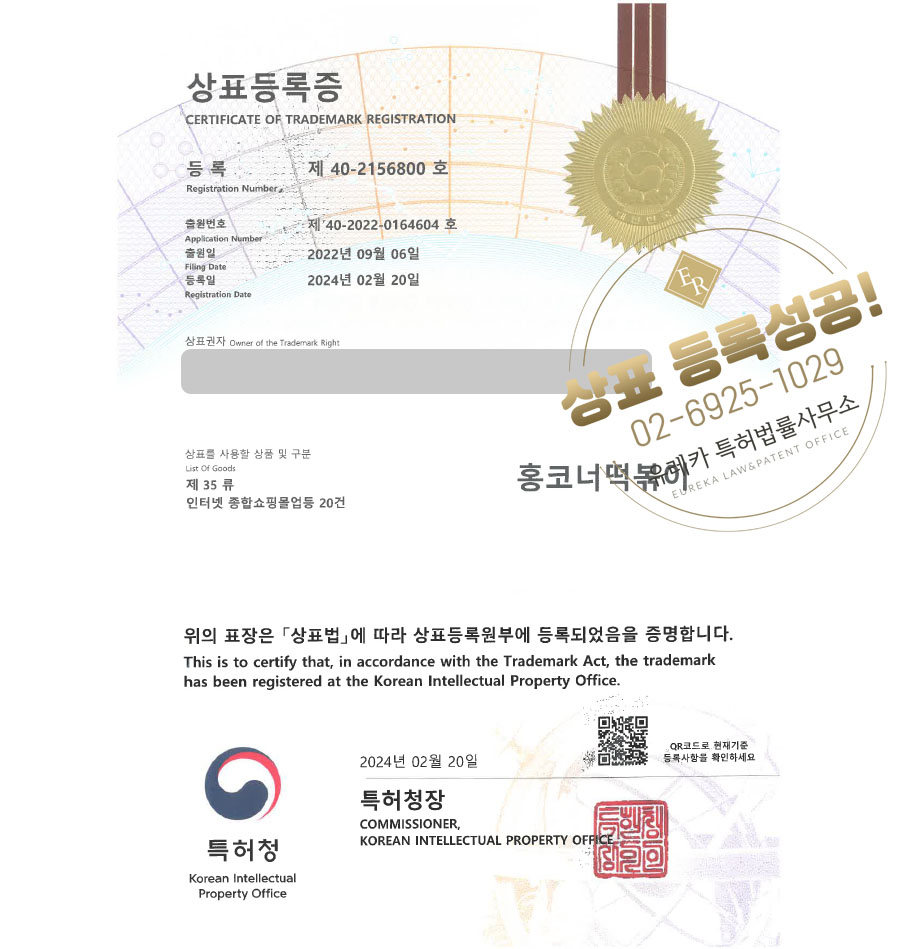 유레카 상표 등록 성공! 음식점, 분식업, 식당 상표 출원 “홍코너떡볶이” 레시피, 한식, 배민, 배달 음식, 요리, 요식업, 프랜차이즈 상표권 등록