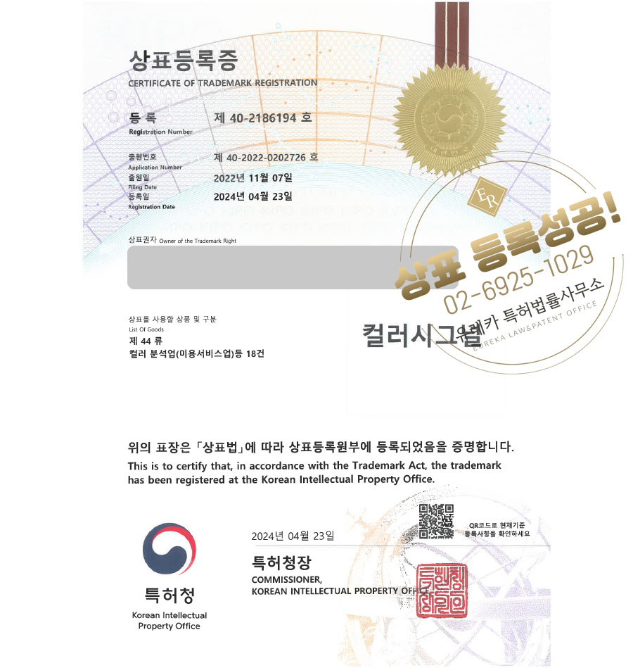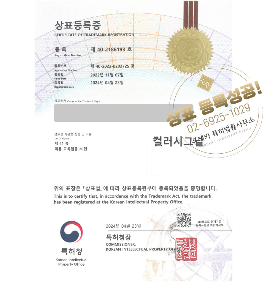 유레카 상표 등록 성공! 퍼스널컬러, 뷰티샵 상표 출원 “컬러시그널” 미용, 메이크업, 이미지컨설팅, 스타일, 미용교육, 학원 상표권 등록