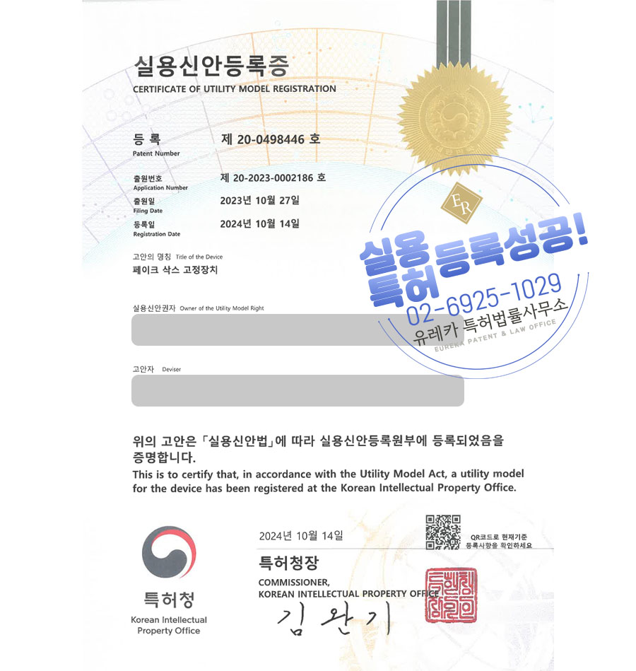유레카특허법률사무소에서 특허등록 성공했습니다!