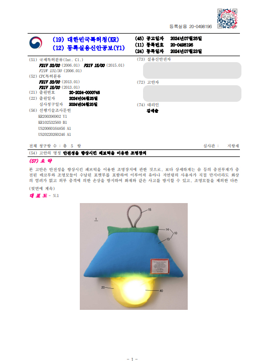 이와 같은 차별점을 기반으로 전략적인 실용신안출원을 진행하여 최종적으로 실용신안등록에