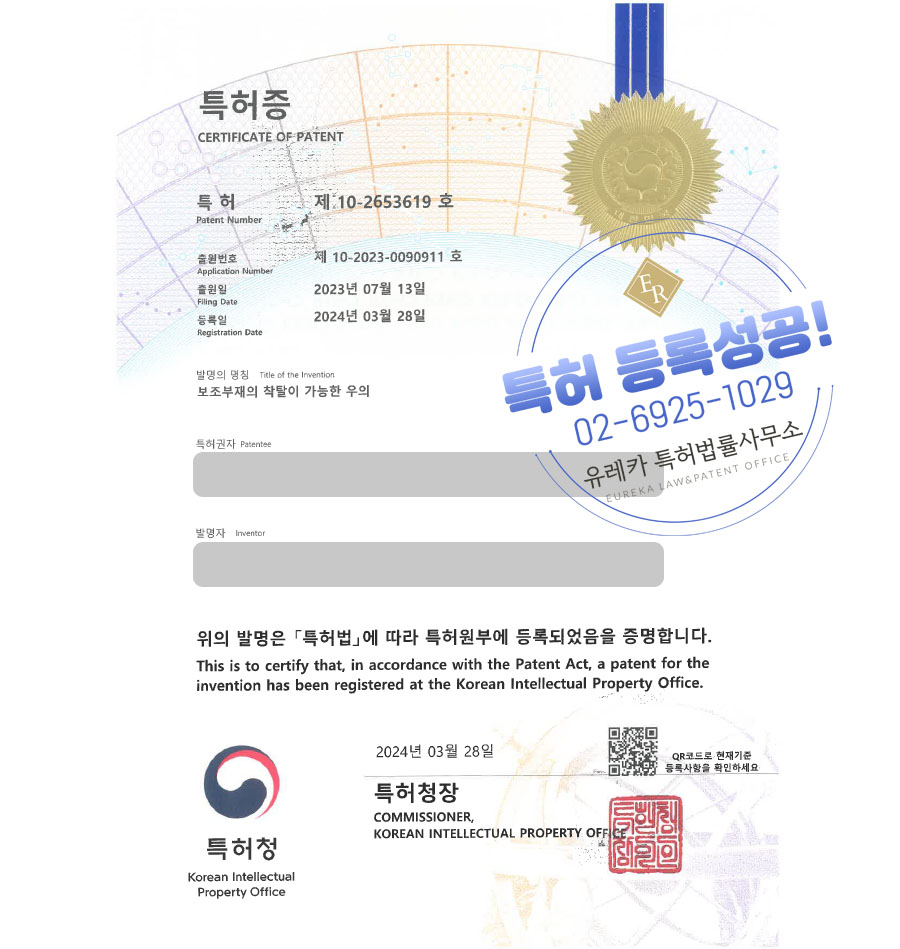 유레카특허법률사무소에서 특허등록 성공했습니다!