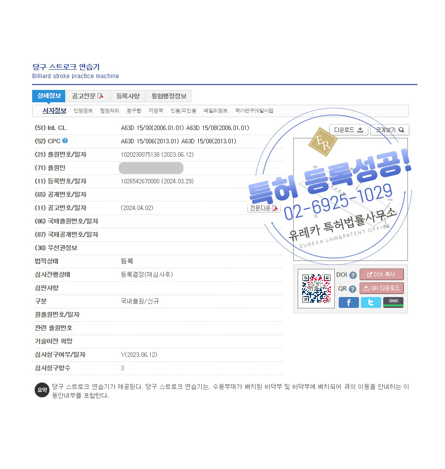 유레카특허법률사무소에서 특허등록 성공했습니다!