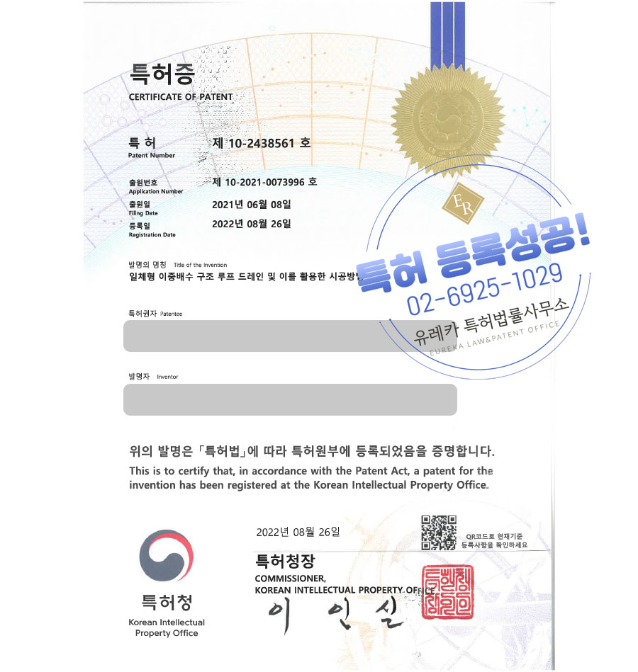유레카특허법률사무소에서 특허등록 성공했습니다!