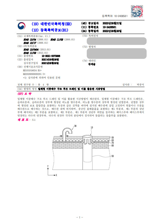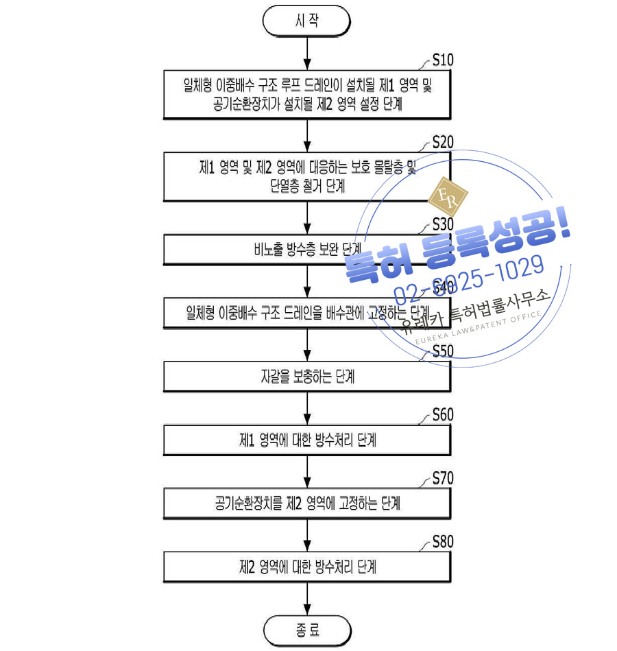 일체형 이중배수 구조 루프 드레인을 통하여, 비노출 방수층 상에 고이는 물과 수분을 효과적으로 배출시킬 수 있고, 공기순환장치를 통하여 비노출 방수층 상에 고이는 물과 수분을 배수관으로 효과적으로 이동시킬 수 있 게 되어, 슬라브층, 비노출 방수층 및 단열층에 고인 물과 수분에 의한 결함을 효과적으로 차단할 수 있게하는 특징이 선행발명과 차별점으로 분석되었고,