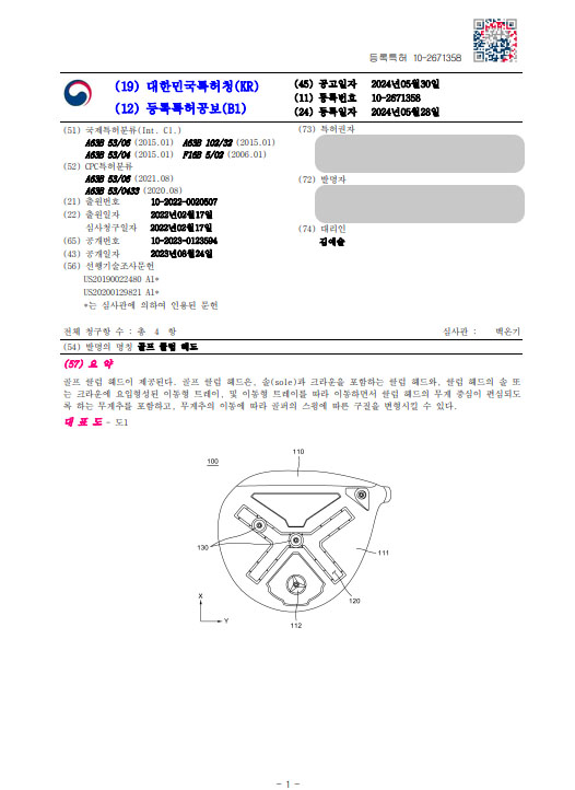 무게추의 이동에 따라 골퍼의 구질을 용이하게 변형시킬 수 있고, 무게추를 미세하게 슬라이드 이동시키면서 구질을 다양하게 조절할 수 있는 특징 있는 특징이 선행발명과 차별점으로 분석되었고,