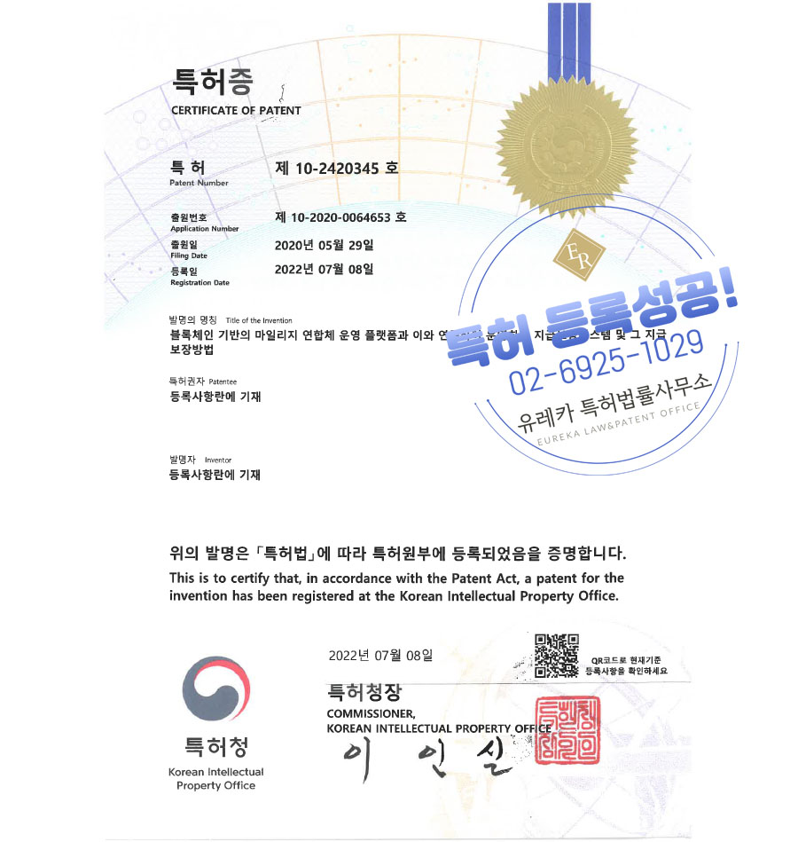 유레카특허법률사무소에서 특허등록 성공했습니다!
