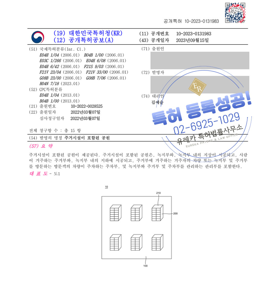 유레카 특허 등록 성공사례 I 주거, 분양, 도시, 공원, 건설, 거주, 주택, 아파트, 부동산, 개발, 토지, 부지, 계획, 공동주택 특허 출원 “주거시설이 포함된 공원” 특허권 등록