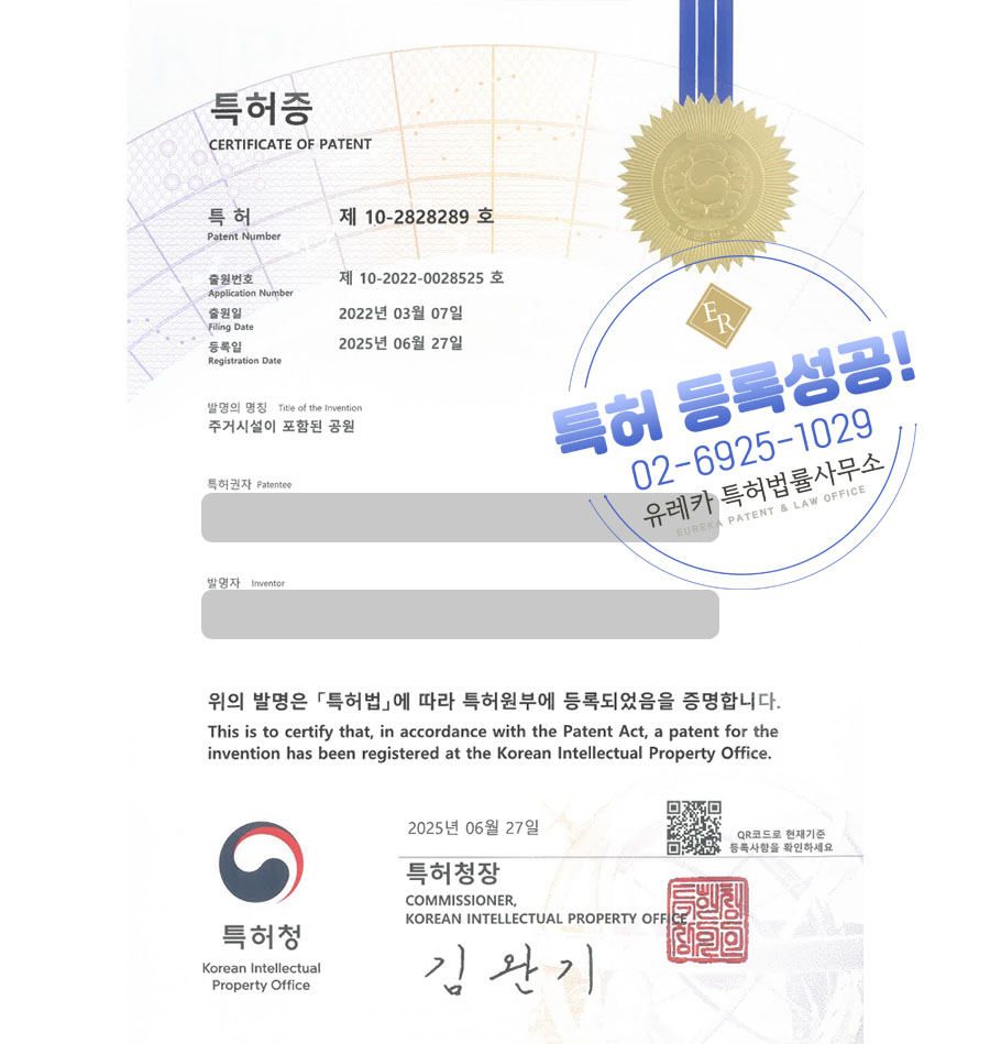 유레카특허법률사무소에서 특허등록 성공했습니다!