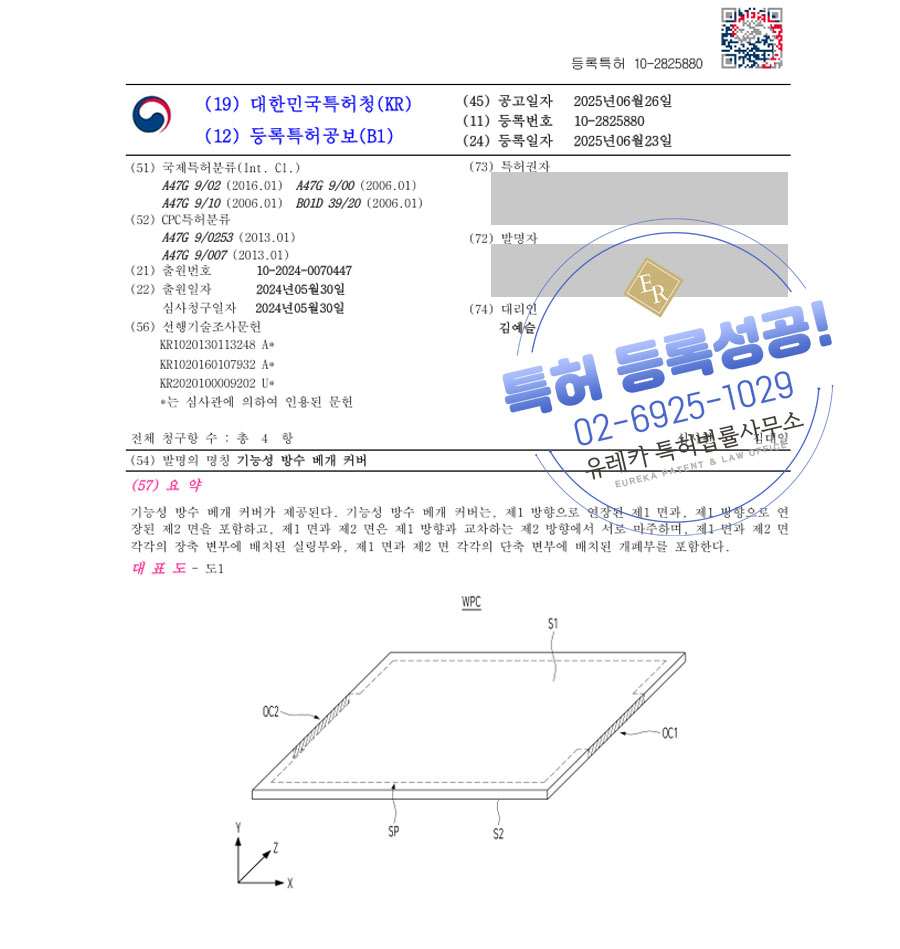 유레카특허법률사무소에서 특허등록 성공했습니다!