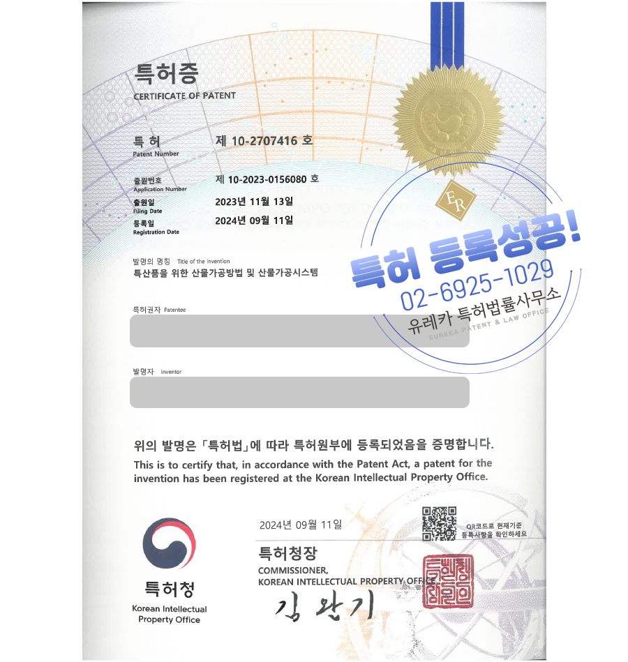 유레카특허법률사무소에서 특허등록 성공했습니다!