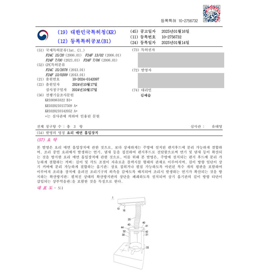 유레카특허법률사무소에서 특허등록 성공했습니다!