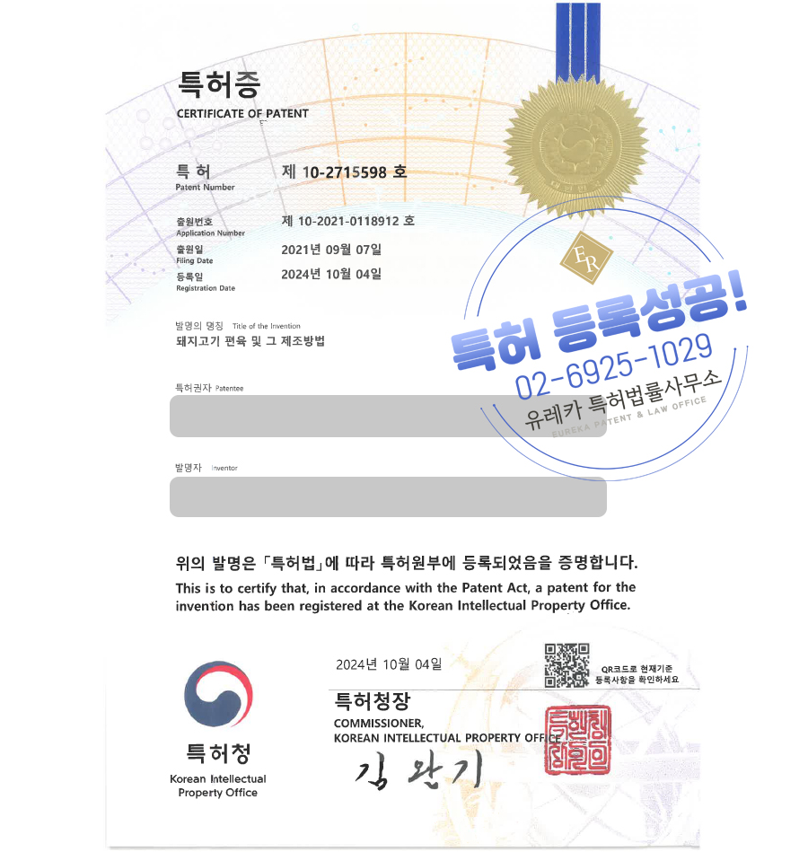 유레카특허법률사무소에서 특허등록 성공했습니다!