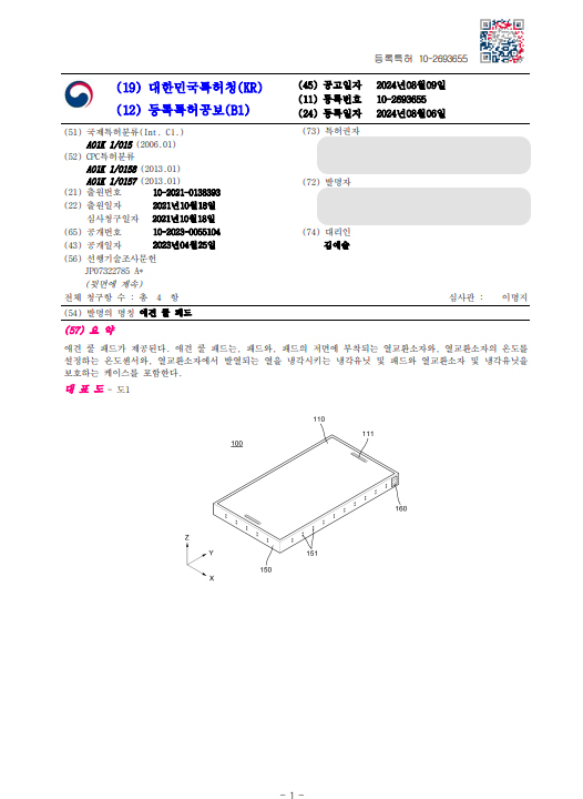 유레카 특허 등록 성공사례 II 반려동물 용품, 쿨링 패드, 아이스 매트, IOT, 냄새제거 특허 출원 “애견 쿨 패드” 특허권 등록